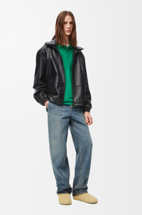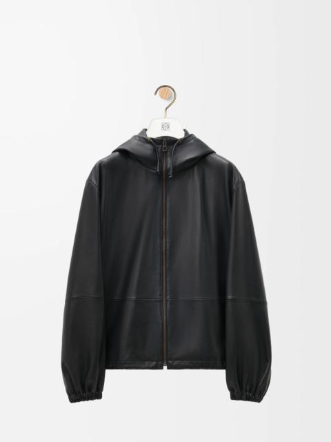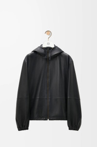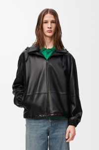 Jacket crafted in lightweight soft nappa lambskin. - Relaxed fit - Regular length - Hybrid hooded collar with drawstring - Elasticated cuffs - Zip front fastening - Adjustable drawstring hem - Vertical zip welt pockets - Inside welt pocket - Fully lined - Embossed Anagram placed on the hood - Embossed LOEWE leather pouch Details - Colour: Black - Main material: Nappa - Weight: 1.0 kg - Model ID: H526Y34L18 - Made in: Italy
