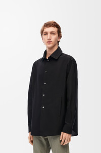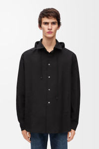 Hooded overshirt crafted in medium-weight cotton. - Relaxed fit - Regular length - All over Anagram jacquard at collar, inside yoke and cuffs - Detachable hooded collar with drawstring - Button front fastening with LOEWE engraved mother-of-pearl buttons - Welt pockets - Two-tone 3D effect LOEWE Anagram jacquard placed at the back Details - Colour: Black - Main material: Cotton - Weight: 0.4 kg - Model ID: H526Y05WBB - Made in: Italy