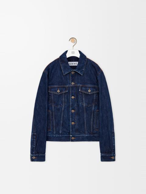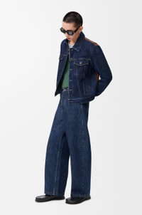 Jacket in medium-weight cotton denim and nappa calfskin featuring a hybrid construction. - Relaxed fit, regular length - Classic collar - Button front fastening, buttoned cuffs - Chest patch pockets, welt pockets - LOEWE embossed leather patch placed at the back Colour: Raw Denim Main material: Cotton/Nappa Weight: 1.4 kg Made in: Italy