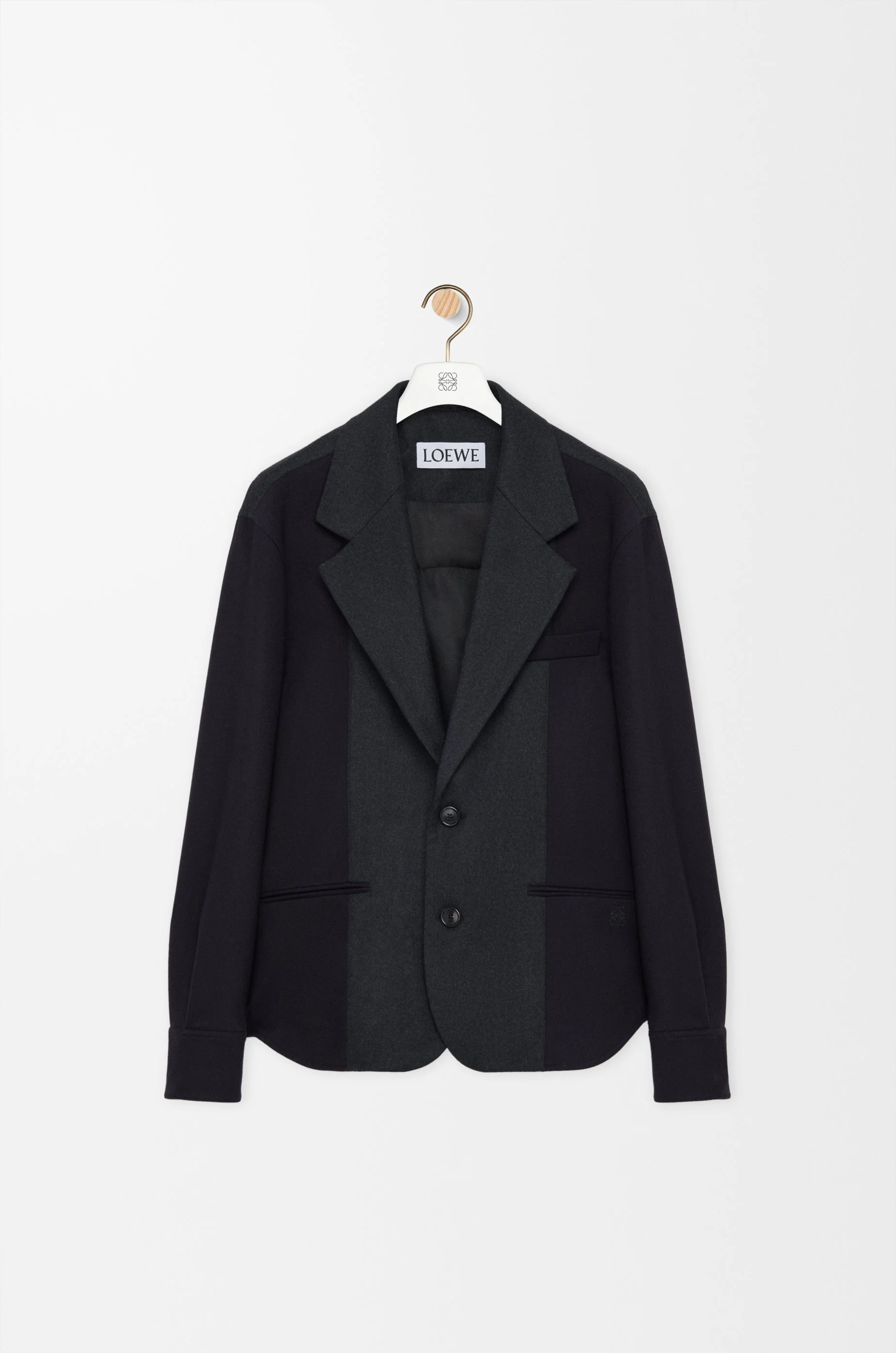 Jacket in medium-weight wool flannel featuring a hybrid two-tone shirt design and a single-breasted construction. - Regular fit, regular length - Notch lapel - Button front fastening, buttoned cuffs - Chest welt pocket, jet pockets - Anagram embroidery placed at the front Colour: Navy/Grey Main material: Wool Weight: 0.2 kg Made in: Italy Materials & care Main Material: 100% wool