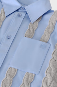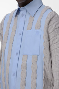 Shirt in medium-weight cotton twill and medium-weight wool. - Regular fit, regular length - Classic collar - Button front fastening - Chest patch pocket - Ribbed cuffs and hem - Anagram embroidery placed on the chest pocket Colour: Blue/Grey Main material: Cotton/wool Weight: 0.65 kg Made in: Italy Materials & care Main Material: 100% wool