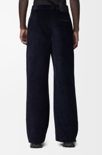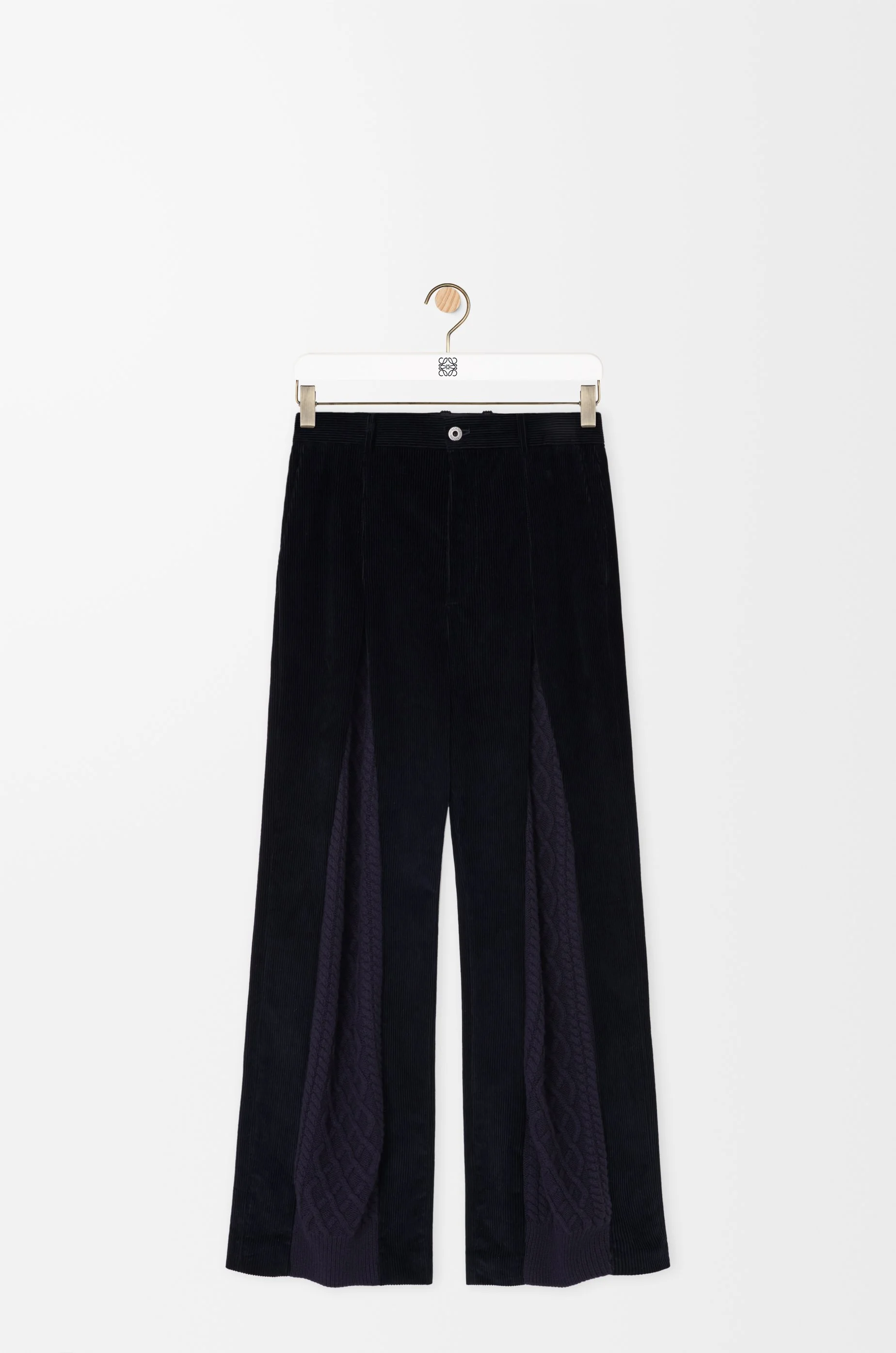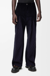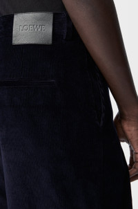 Trousers in medium-weight cotton corduroy and medium-weight wool featuring a hybrid design with cable knit inserts. - Regular fit, regular length - Mid waist, straight leg - Concealed zip fly - Slash pockets, rear welt pocket - LOEWE embossed leather patch placed at the back Colour: Dark Navy Blue/Navy Main material: Cotton Weight: 0.4 kg Made in: Italy Materials & care Main Material: 100% cotton