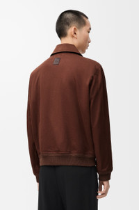 Jacket in lightweight washed cotton satin featuring metal clip and concealed zip front fastening, and textured knit cuffs and hem. - Regular fit, regular length - Classic collar - Rounded patch pockets, inside LOEWE Anagram embossed leather patch pocket - Leather backing at the collar and placket - Fully lined - LOEWE Anagram embossed leather patch placed at the back Colour: Brown/Dark Brown Main material: Cotton Weight: 1.0 kg Made in: Italy Materials & care Main Material: 100% cotton