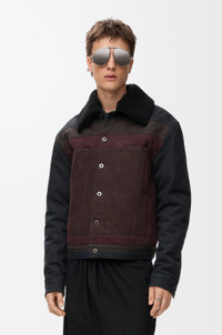 Jacket in medium-weight printed denim featuring intarsia squares inspired by Josef Albers's "Homage to the Square" series . This jacket is part of the LOEWE x Albers collection. - Relaxed fit, regular length - Button front fastening - Buttoned cuffs with leather backing and a detachable shearling collar - Vertical welt pockets - Adjustable tabs at the waist - Quilted lining - LOEWE embossed leather patch placed at the back Colour: Black/Burgundy Main material: Cotton Weight: 1.4 kg Made in: Italy Materials & care Main Material: 100% cotton