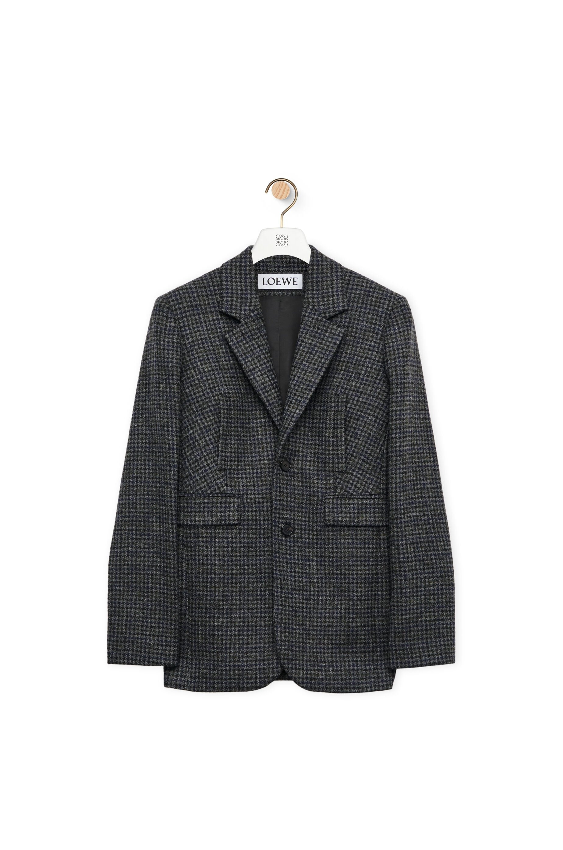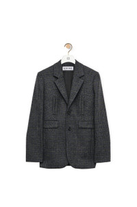 Jacket crafted in medium-weight Gun Club check wool. - Regular fit - Regular length - Single breasted - Notch lapels - Buttoned cuffs - Button fastening - Vertical welt pocket - Flap pockets - Inside jet pockets - LOEWE jacquard lining Details - Colour: Black/Blue/Grey - Main material: Wool - Weight: 0.9 kg - Model ID: HSM1Y03W08 - Made in: Italy