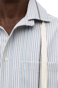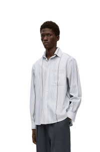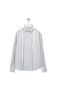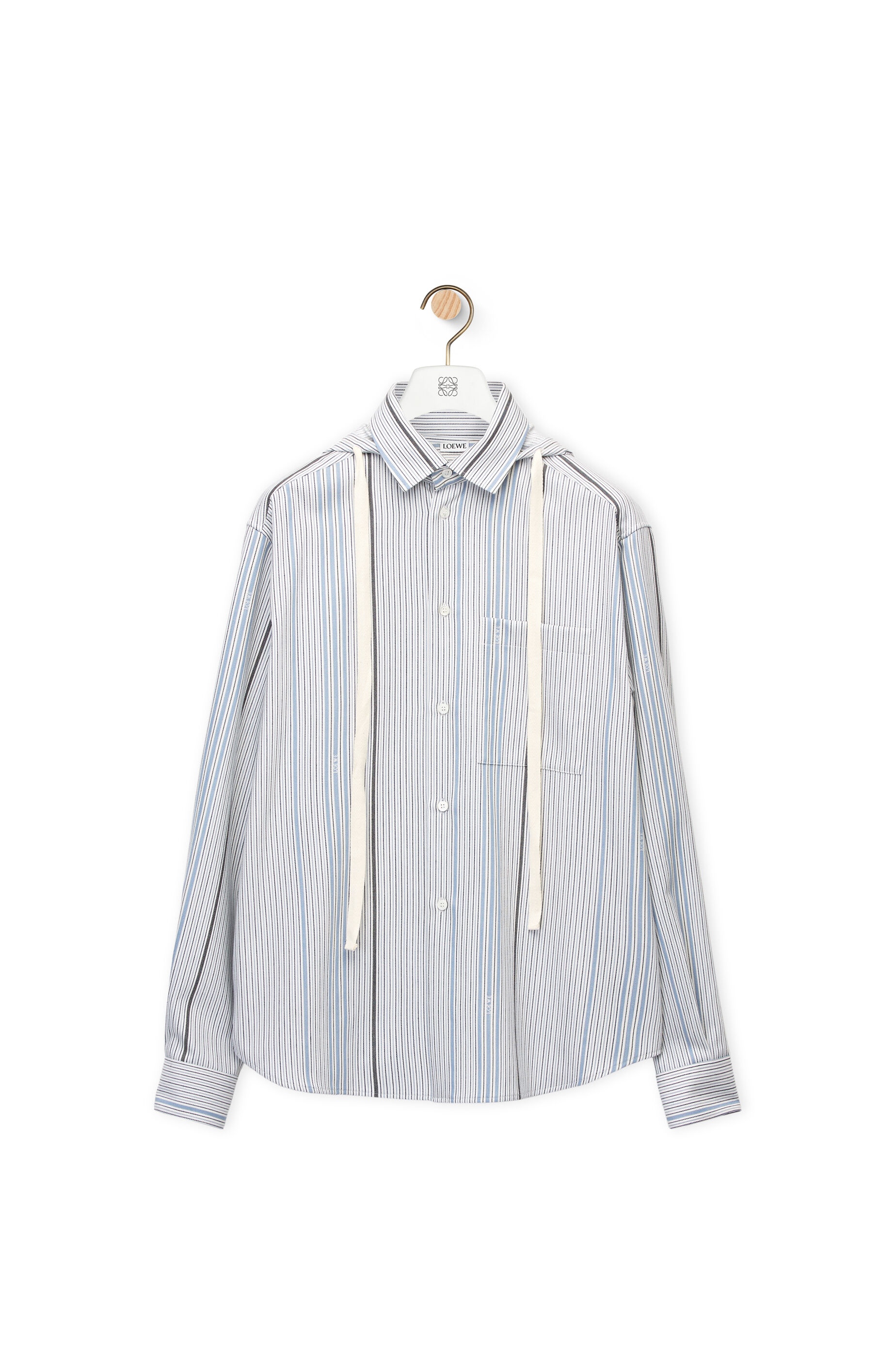 Button front shirt in wool and cotton twill jacquard in signature LOEWE stripe. With double collar construction featuring a detachable hood and buttoned cuffs. And with trompe l"oeil effect chest pocket and drawstring. - Relaxed fit Details - Colour: White/Light Blue - Main material: Wool/Cotton - Weight: 0.25 kg - Model ID: H526Y05WAP - Made in: Romania