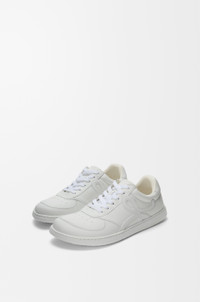 Sneaker in soft grained calfskin featuring a full monochrome look with an asymmetric toe shape and a nappa fussbett. - 25mm heel - Lace closure - L monogram at the side, embossed LOEWE on the heeltab - Anagram-embossed rubber cupsole Colour: White Main material: Calfskin Weight: 1.0 kg Made in: Italy
