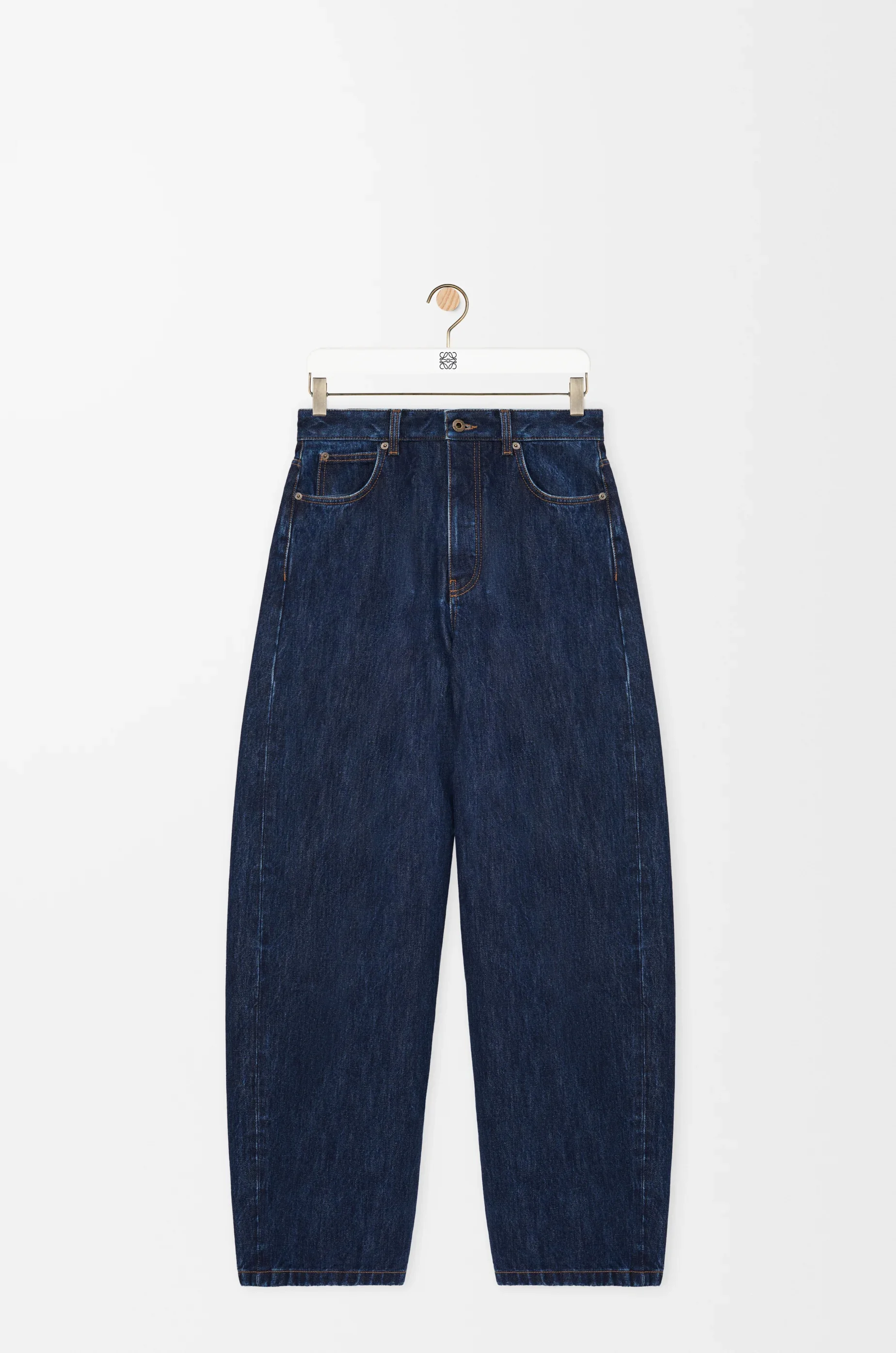 Jeans in medium-weight cotton denim. - Relaxed fit, regular length - Mid waist, curved leg - Concealed zip fly - Five pocket style - LOEWE embossed leather patch placed at the back Colour: Raw Denim Main material: Cotton Weight: 0.8 kg Made in: Italy Materials & care Main Material: 100% cotton