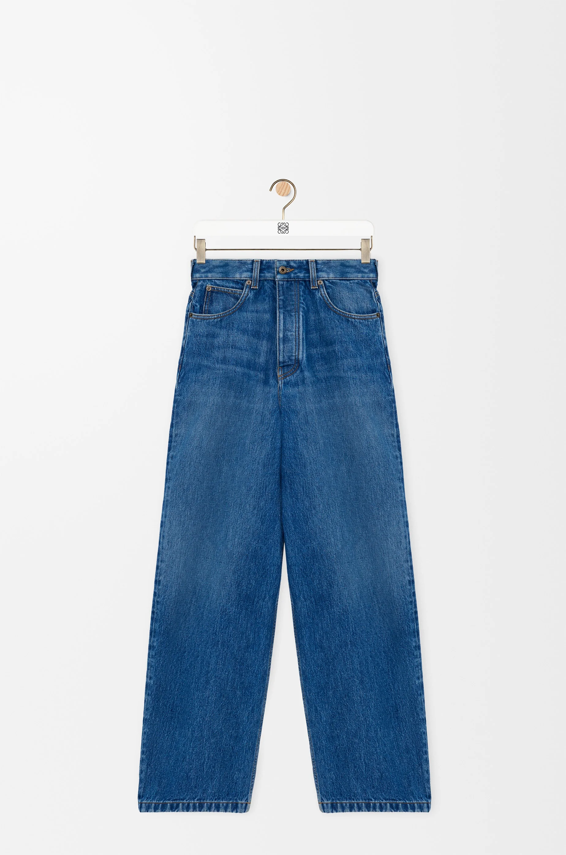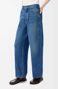 Jeans in medium-weight cotton denim. - Relaxed fit, regular length - Mid waist, curved leg - Concealed zip fly - Five pocket style - LOEWE embossed leather patch placed at the back Colour: Vintage Blue Main material: Cotton Weight: 0.8 kg Made in: Italy Materials & care Main Material: 100% cotton