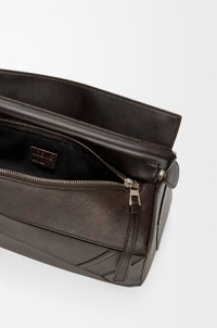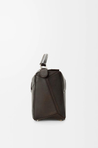The Puzzle is defined by its distinctive geometric lines and its cuboid form. This large version is crafted in vintage-finish shiny calfskin with denim trousers-inspired details. - Shoulder, crossbody or hand carry - Detachable and adjustable strap - Zip closure with calfskin pull - One external rear zipped pocket, two internal slip pockets - Herringbone cotton canvas lining Colour: Vintage Brown Metallic colour: Palladium Main material: Shiny calf Strap length: 79 - 117 cm Strap drop: 43 - 62 cm Handle drop: 10 cm Weight: 1.01 kg Height: 21.5 cm Width: 33 cm Depth: 14.7 cm Made in: Spain