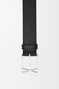 Belt in smooth calfskin with a sleek and understated geometric buckle engraved with a discreet LOEWE logo. - 3.5cm wide - Five holes regulation - Embossed LOEWE Details - Colour: Black/Palladium - Metallic colour: Palladium - Main material: Smooth Calf/Brass - Weight: 0.12 kg - Depth (cm): 3.5 - Depth (inch): 1.4 - Model ID: E619Z20X34 - Made in: Spain