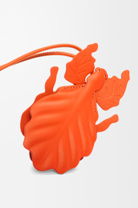Leaf insect keyfob charm in classic calfskin with a looped calfskin strap and a keyring. Colour: Vivid Orange Metallic colour: Gold Main material: Classic Calf Weight: 0.02 kg Width: 45 cm Depth: 6 cm Made in: Spain