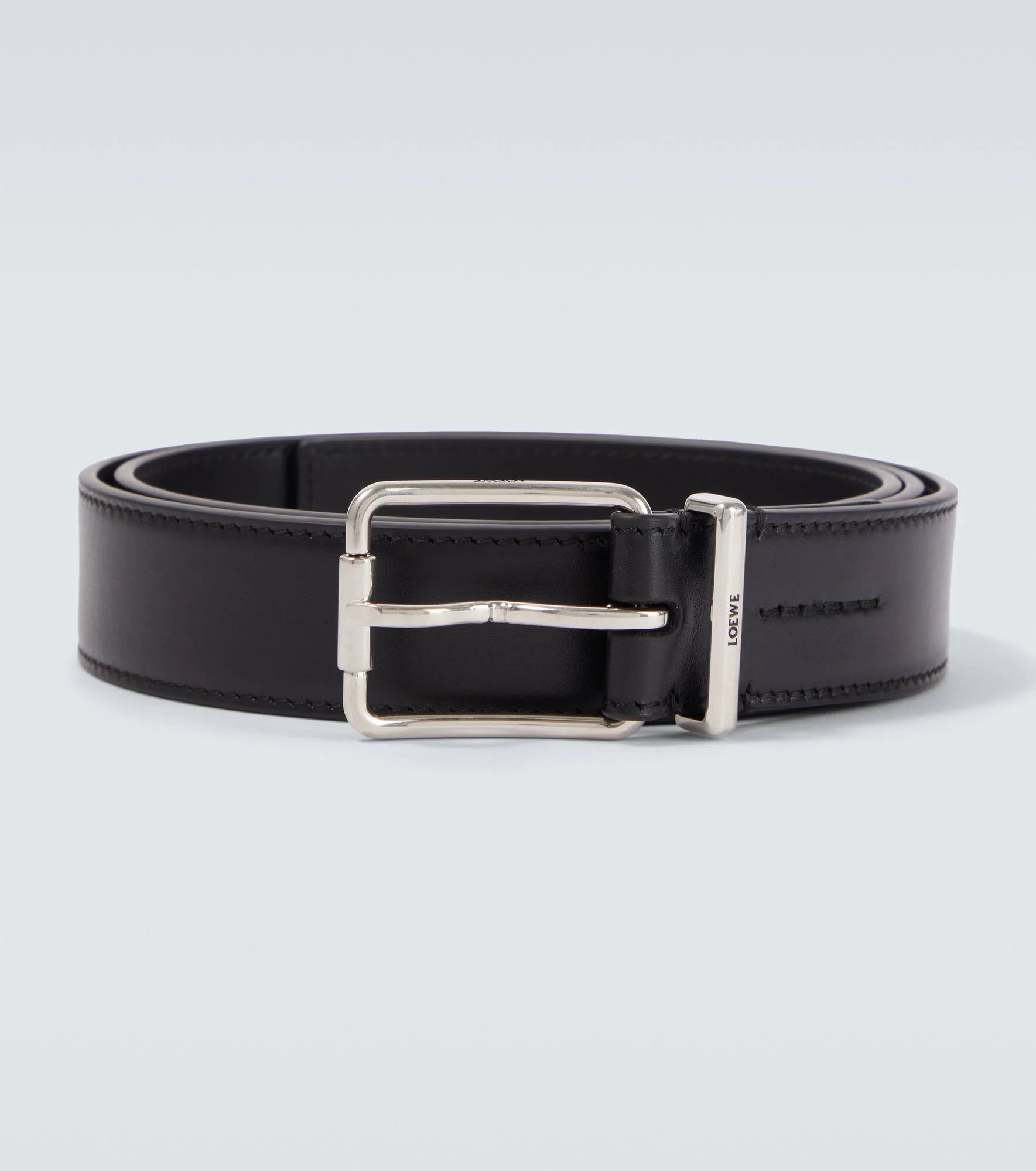 All of Loewe's leather goods are made in Spain, reflecting the house's centuries-long expertise and artisanal methods. This belt is crafted from supple leather and boasts silver-toned hardware. Product Details - Material: calf leather - Lining: leather - Made in Spain - Color: black - Designer color name: Black/Vintage Palladium - Item color: black - Hardware color: silver - Includes: dust bag, box - Item number: P01123386 Size & Fit - Width 3cm-1" - Buckle width 4cm-1.5"