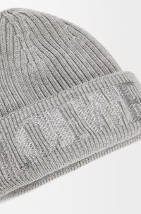 Beanie crafted in medium-weight wool knitted rib. - Turn-up cuff - Blurred LOEWE embroidery Details - Colour : Grey - Main material : Wool - Weight : 0.12 kg - Height (cm) : 26 - Width (cm) : 21.5 - Height (inch) : 10.2 - Width (inch) : 8.5 - Model ID : F540257X23 - CIL : - 0011083011 - Made in : Italy