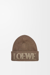 Beanie crafted in medium-weight ribbed wool knit. - Regular length - Turn-up cuff - Blurred LOEWE embroidery placed at the front Details - Colour : Light Brown - Main material : Wool - Weight : 0.12 kg - Height (cm) : 26 - Width (cm) : 21.5 - Height (inch) : 10.2 - Width (inch) : 8.5 - Model ID : F540257X23 - CIL : - 0011189859 - Made in : Italy