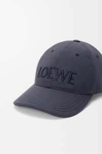 Cap in canvas featuring a LOEWE embroidery across the front. - Adjustable strap with metal slider Colour: Navy Blue Metallic colour: Palladium Main material: Canvas Weight: 0.1 kg Made in: Italy