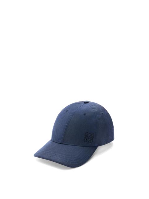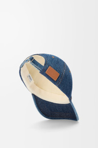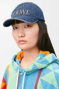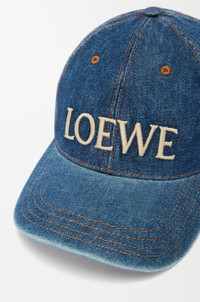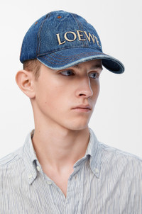 Cap in denim with contrast topstitching and eyelets featuring a LOEWE embroidery across the front. - Adjustable strap with metal slider - Embossed LOEWE calfskin patch Colour: Denim Blue Metallic colour: Palladium Main material: Denim Weight: 0.11 kg Made in: Italy