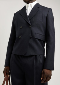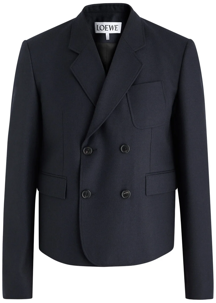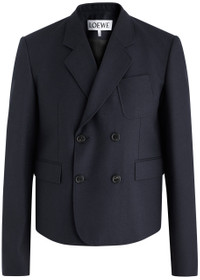 Info & Care Loewe wool blazer Notched lapels, lightly padded shoulders, button-fastening cuffs, chest patch pocket, two flap front pockets, fully lined Double-breasted button fastenings at front; 100% wool; lining: 100% viscose Dry clean; Size & Fit Length shoulder to hem: 26.5 inches/;67.5cm Midweight; Regular fit, cropped; Model is 6'1"/ 185cm, chest size 38 inches and wears a size;IT48