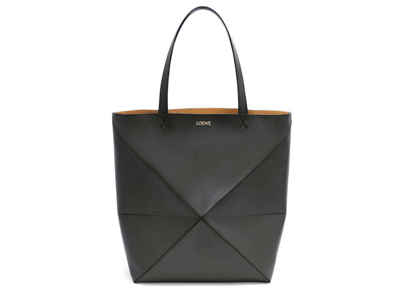LOEWE Large Puzzle Fold Tote in Shiny Calfskin Black