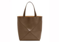 LOEWE Large Puzzle Fold Tote in Shiny Calfskin Umber