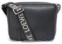 LOEWE Military Messenger Bag in Soft Grained Calfskin and Jacquard XS Deep Navy