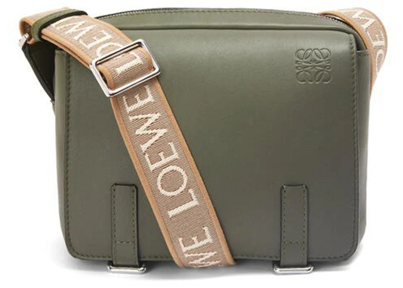 LOEWE Military Messenger Bag in Soft Grained Calfskin and Jacquard XS Khaki Green