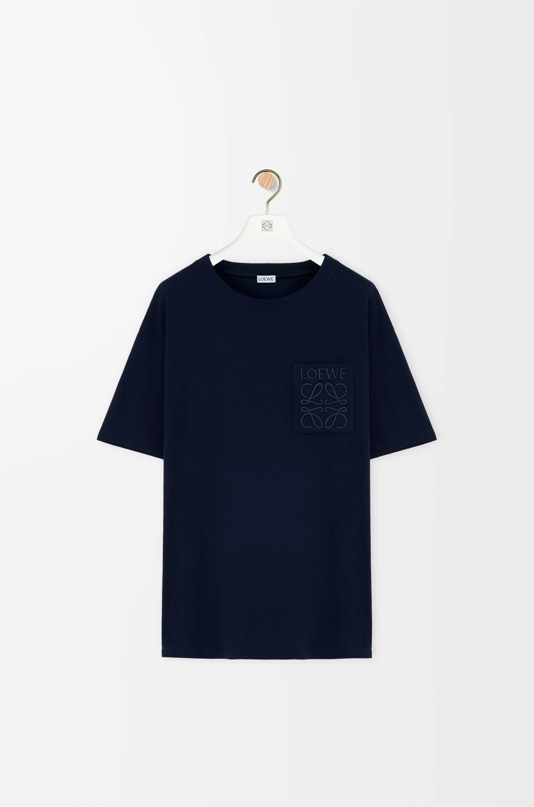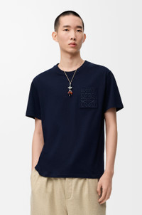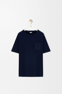 T-shirt in lightweight cotton. - Relaxed fit, regular length - Crew neck - Ribbed collar - LOEWE Anagram embroidery placed on the chest patch pocket Colour: Dark Navy Main material: Cotton Weight: 0.2 kg Made in: Portugal Materials & care Main Material: 100% cotton Other Material: 99% cotton 1% elastane