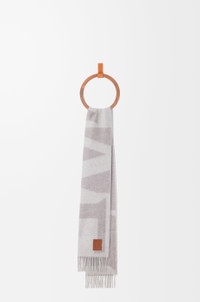 Scarf in lightweight cashmere featuring an oversized two-tone LOEWE cut-off jacquard. - 30cm x 160cm - Fringed edges - LOEWE Anagram embossed leather patch placed on the corner Colour: Light Grey/Stone Main material: Cashmere Weight: 0.152 kg Height: 160 cm Width: 30 cm Made in: United Kingdom