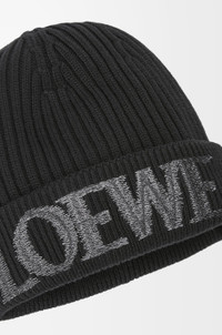 Beanie crafted in medium-weight wool knitted rib. - Turn-up cuff - Blurred LOEWE embroidery Details - Colour : Black - Main material : Wool - Weight : 0.12 kg - Height (cm) : 26 - Width (cm) : 21.5 - Height (inch) : 10.2 - Width (inch) : 8.5 - Model ID : F540257X23 - CIL : - 0011081635 - Made in : Italy