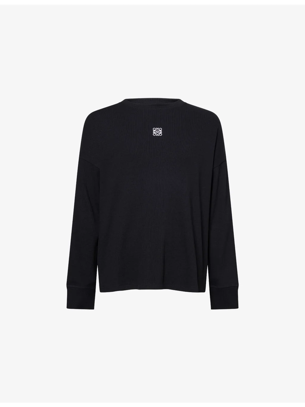 PRODUCT DETAILS - Loewe cotton-jersey T-shirt - 100% cotton; embroidery 100% polyester - Relaxed fit, crewneck, long sleeves, anagram embroidery at front, all-over ribbed - Machine wash at 30°C - Made in Portugal - Model is 6ft 2in/1.88m and wears a size medium - Midweight, stretchy Ref: R04494957