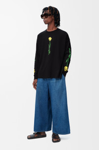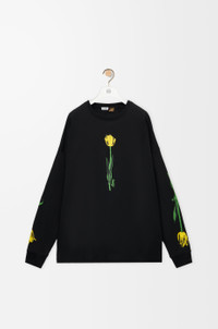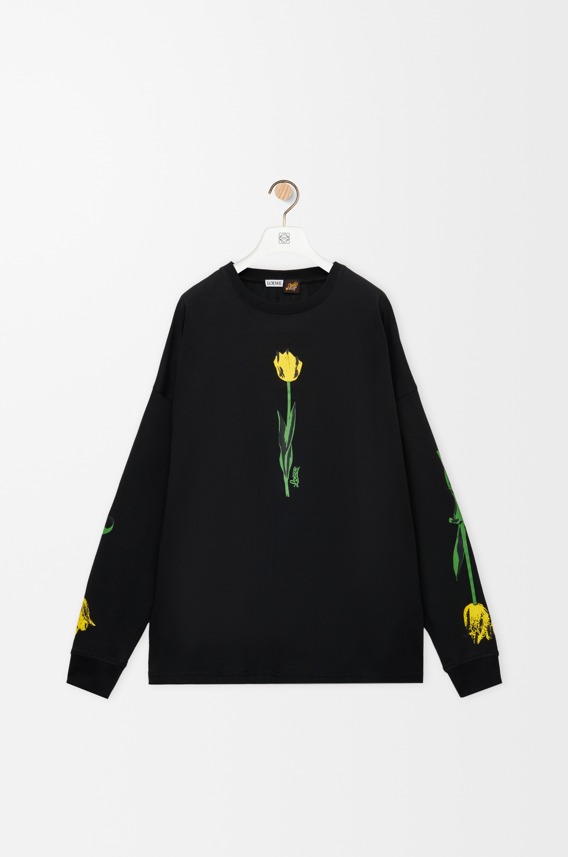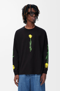 Long sleeve t-shirt in lightweight cotton featuring exclusive placed floral motifs at the front, back and sleeves. - Regular fit, regular length - Crew neck - Ribbed collar and cuffs - LOEWE Paula’s Ibiza jacquard label placed at the back Colour: Black Main material: Cotton Weight: 0.2 kg Made in: Portugal
