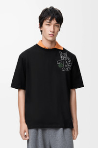 T-shirt in lightweight cotton featuring a Lucky Cat and Anagram embroidery on the chest. This T-shirt is inspired by Louis Wain's "Futurist Cats" porcelain vase series. - Loose fit, regular length - Crew neck - Ribbed collar Colour: Black Main material: Cotton Weight: 0.24 kg Made in: Portugal Materials & care Main Material: 100% cotton