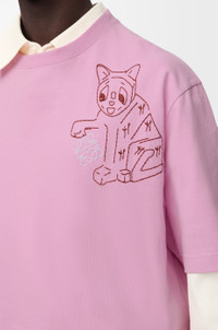 T-shirt in lightweight cotton featuring a Lucky Cat and Anagram embroidery on the chest. This T-shirt is inspired by Louis Wain's "Futurist Cats" porcelain vase series. - Loose fit, regular length - Crew neck - Ribbed collar Colour: Pink Main material: Cotton Weight: 0.24 kg Made in: Portugal Materials & care Main Material: 100% cotton