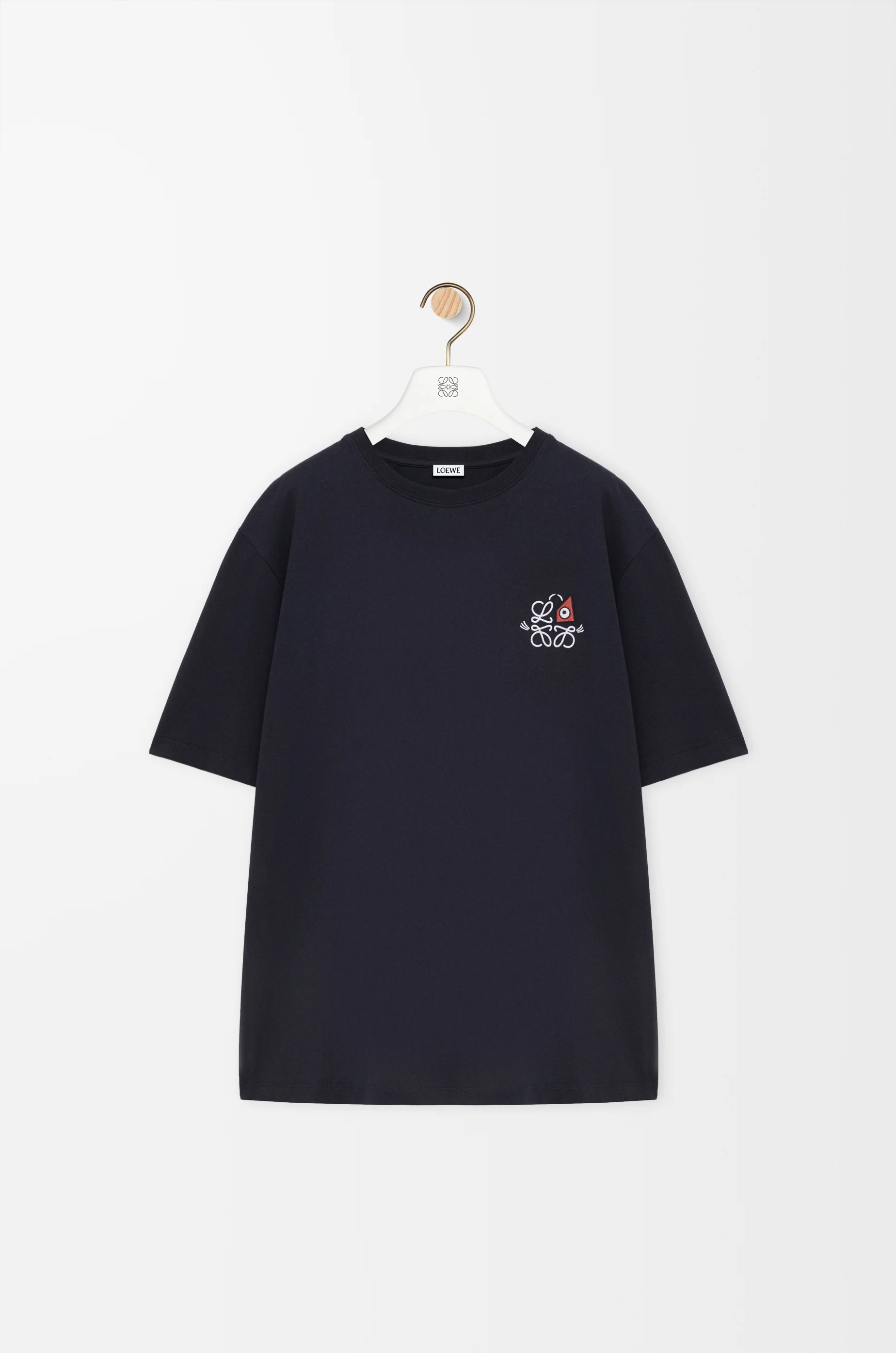T-shirt in lightweight cotton featuring a cat eye and Anagram embroidery on the chest. This T-shirt is inspired by Louis Wain's "Futurist Cats" porcelain vase series. - Loose fit, regular length - Crew neck - Ribbed collar Colour: Navy Blue Main material: Cotton Weight: 0.15 kg Made in: Portugal Materials & care Main Material: 100% cotton