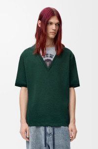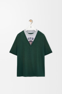 T-shirt in lightweight mercerised cotton blend with a washed finish featuring a trompe l’oeil construction with a LOEWE screenprint at the front. - Loose fit, regular length - Crew neck - Anagram embroidery placed at the back Colour: Green/Grey Main material: Cotton/Viscose Weight: 0.3 kg Made in: Portugal Materials & care Main Material: 76% cotton 24% viscose