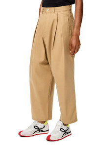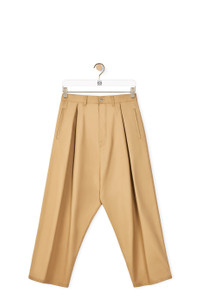 Low crotch, pleat front trousers in cotton with a side pocket and two rear patch pockets. - Oversize fit - Embossed LOEWE calfskin tab Details - Colour: Beige - Main material: Cotton - Weight : 0.69 kg - Model ID: H526Y04W86 - Made in: Italy