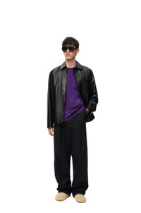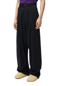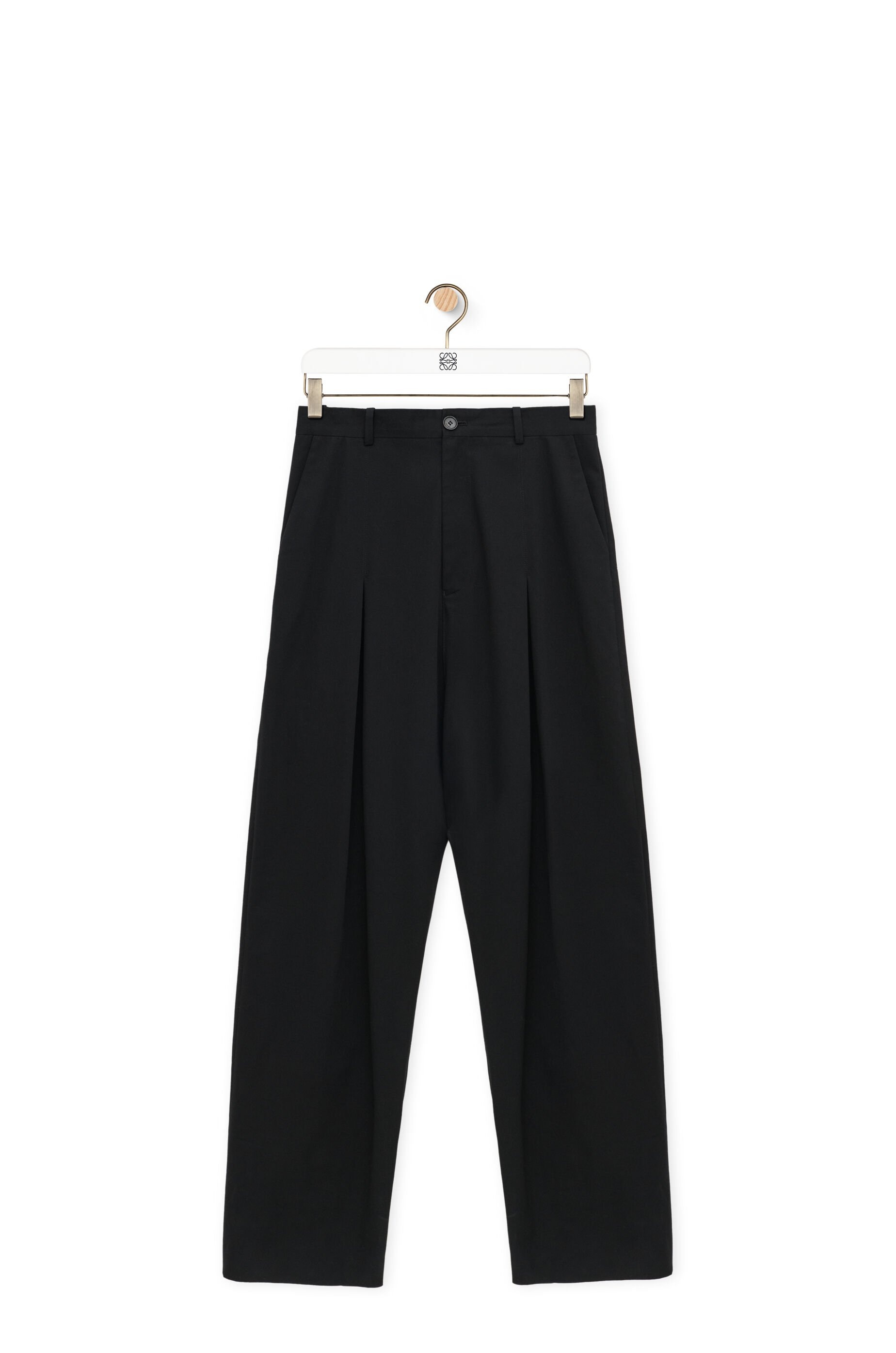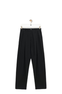 Trousers crafted in lightweight compact cotton. - Relaxed fit - Long length - Mid waist - Loose leg - Low crotch silhouette - Pleats at the front - Belt loops - Concealed zip fly - Seam pockets - Rear flap pocket - LOEWE engraved buckle and leather patch placed at the back Details - Colour: Black - Main material: Coton - Weight: 0.65 kg - Model ID: H526Y04WEP - Made in: Italy