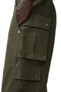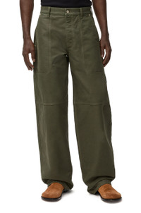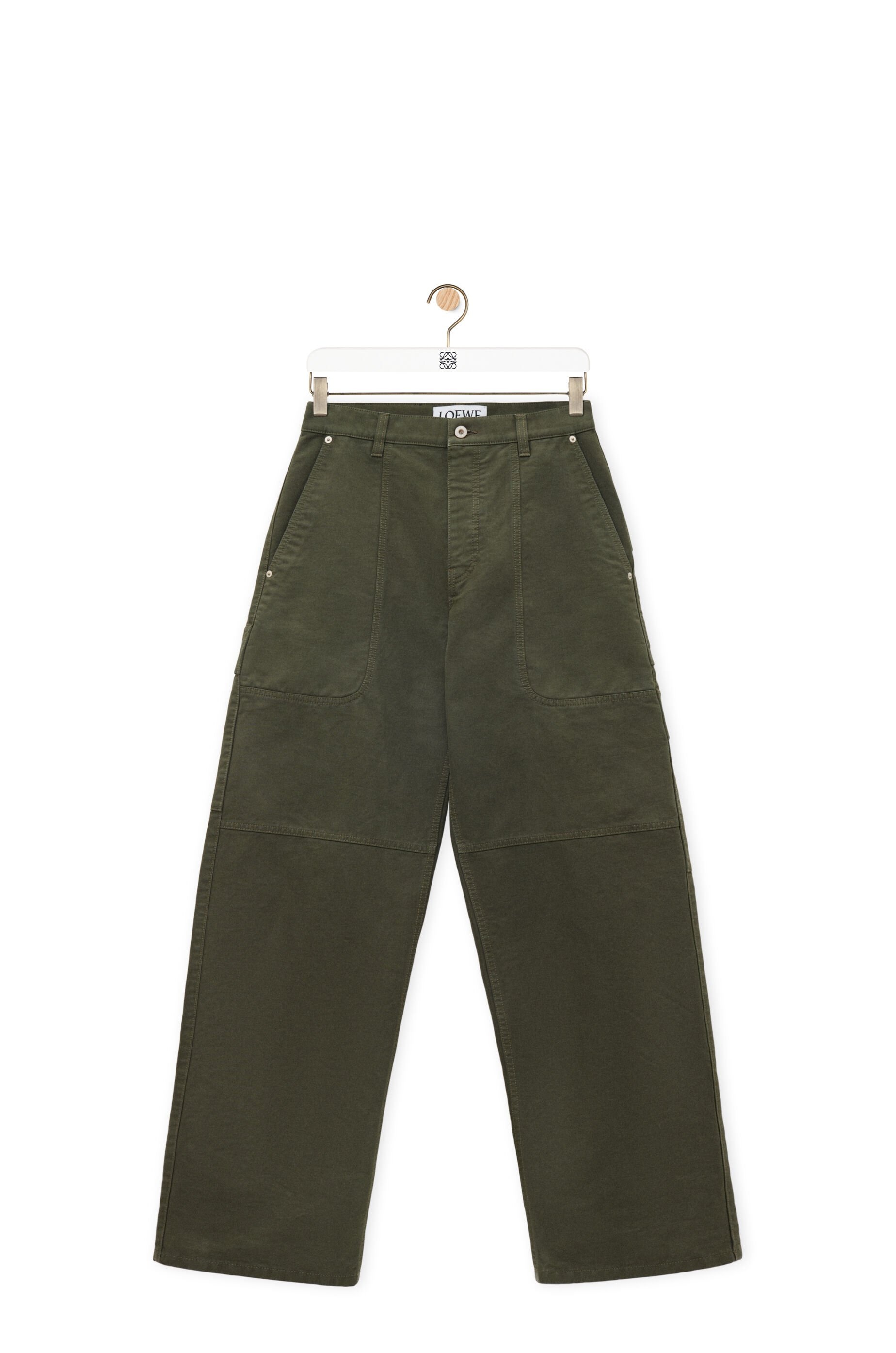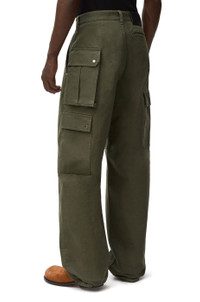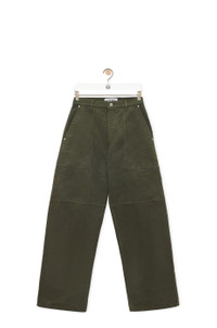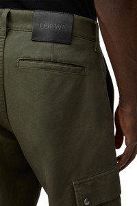 Trousers in medium-weight garment-dyed cotton twill featuring carpenter pockets at the front and buttoned cargo pockets at the rear. - Relaxed fit, regular length - Mid waist, straight leg - Concealed button fly - Rear welt pocket - LOEWE embossed leather patch placed at the back Details - Colour : Khaki Green - Main material : Cotton - Weight : 0.9 kg - Model ID : H526Y04WG6 - Made in : Italy