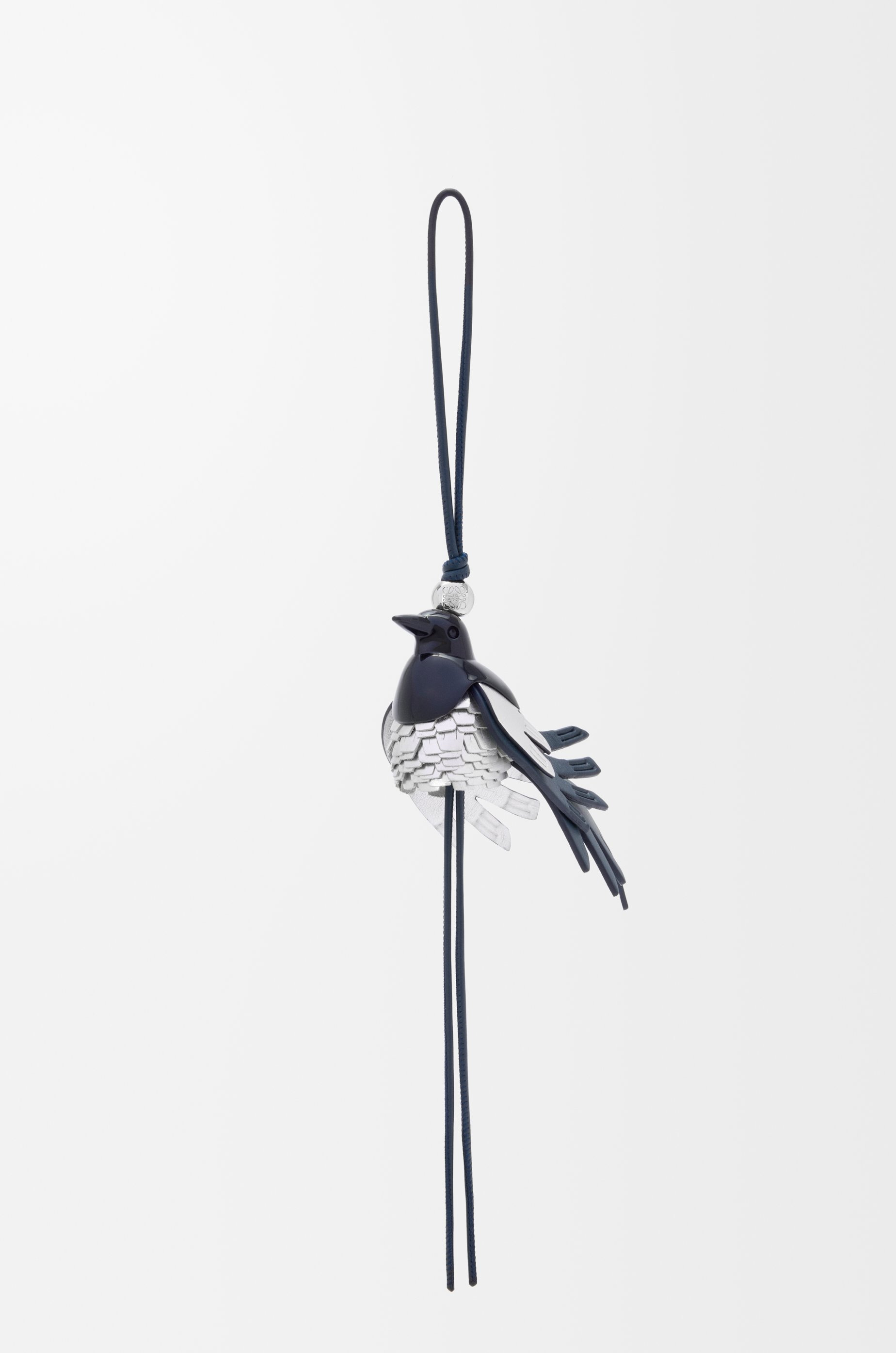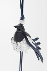 Magpie charm in classic calfskin and acetate with a looped calfskin strap and an Anagram Pebble dice. - Engraved Anagram Colour: Black/Silver Metallic colour: Black Main material: Classic Calf Weight: 0.051 kg Width: 35 cm Depth: 11 cm Made in: Spain