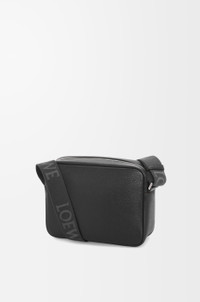 The Pebble messenger is a functional and compact design featuring a double signature Anagram Pebble. This medium version is crafted in supple grained calfskin. - Adjustable LOEWE webbing strap - Zip closure - One front pocket with magnetic closure, one internal slip pocket - Suede lining - Silver embossed LOEWE, Anagram Pebble Colour: Black Metallic colour: Palladium Main material: Supple grained calf Strap length: 83 - 153 cm Strap drop: 31 - 67 cm Weight: 0.54 kg Height: 18 cm Width: 23 cm Depth: 9 cm Made in: Portugal