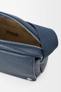 The Pebble messenger is a functional and compact design featuring a double signature Anagram Pebble. This medium version is crafted in supple grained calfskin. - Adjustable LOEWE webbing strap - Zip closure - One front pocket with magnetic closure, one internal slip pocket - Suede lining - Silver embossed LOEWE, Anagram Pebble Colour: Indigo Dye Metallic colour: Palladium Main material: Supple Grained Calf Strap length: 83 - 153 cm Strap drop: 31 - 67 cm Weight: 0.54 kg Height: 18 cm Width: 23 cm Depth: 9 cm Made in: Portugal