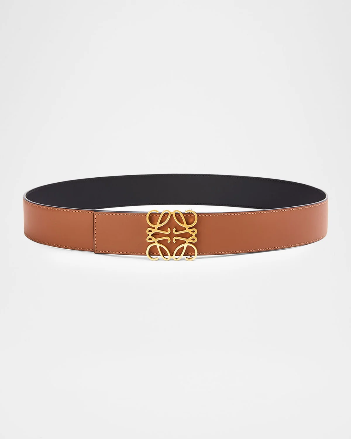 This smooth leather belt by LOEWE reverses from black to tan for a versatile accessory Anagram pin buckle in silvertone metal Adjustable fit; five holes Spot clean Made in Spain