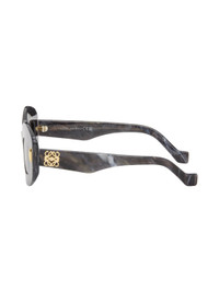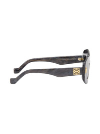 Cat-eye semi-transparent acetate-frame sunglasses in gray. · Gray lenses with 100% UVA/UVB protection · Integrated nose pads · Logo hardware at temples · Partially exposed core wire · Gold-tone hardware · Includes pouch · Size: 49.19 140 Supplier color: Black horn/Smoke