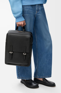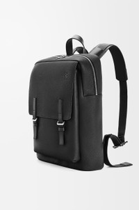 The Military backpack is a spacious design inspired by classic army bags, with a foldover flap and a double leather tab. This version is crafted in soft grained calfskin. - Suitable for a 13 inch laptop - Back, shoulder or hand carry - Top handle, adjustable shoulder straps - Zip closure - One front pocket with magnetic closure, one large internal pocket - Herringbone cotton canvas lining - Embossed Anagram Colour: Black Metallic colour: Palladium Main material: Soft Grained Calf Strap length: 62 - 78 cm Strap drop: 30 - 40 cm Handle drop: 8 cm Weight: 1.22 kg Height: 39 cm Width: 28.5 cm Depth: 11 cm Made in: Portugal