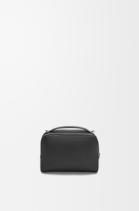 Versatile wearable Mini Camera Crossbody bag with two zip compartments. This version is crafted in soft grained calfskin. - Crossbody or top handle carry - Adjustable and detachable LOEWE webbing strap - Herringbone cotton canvas lining - Embossed Anagram Details - Colour: Black - Metallic colour: Palladium - Main material: Soft Grained Calf - Strap length: 75 - 128 cm - Weight: 0.32 kg - Height (cm): 13 - Width (cm): 18 - Depth (cm): 8.5 - Height (inch): 5.1 - Width (inch): 7.1 - Depth (inch): 3.3 - Model ID: C660R41X01 - CIL: 0010973196 - Made in: Spain