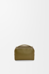 Versatile wearable Mini Camera Crossbody bag with two zip compartments. This version is crafted in soft grained calfskin. - Crossbody or top handle carry - Adjustable and detachable LOEWE webbing strap - Herringbone cotton canvas lining - Embossed Anagram Details - Colour: Olive - Metallic colour: Palladium - Main material: Soft Grained Calf - Strap length: 75 - 128 cm - Weight: 0.32 kg - Height (cm): 13 - Width (cm): 18 - Depth (cm): 8.5 - Height (inch): 5.1 - Width (inch): 7.1 - Depth (inch): 3.3 - Model ID: C660R41X01 - CIL: 0011092681 - Made in: Spain