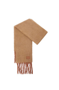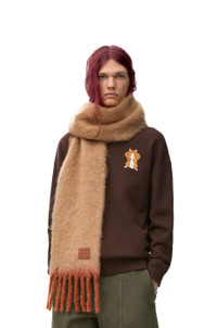 Scarf crafted in medium-weight fluffy mohair and wool blend. - 22cm x 185cm - Contrast chunky fringed edges - LOEWE leather patch placed on the corner Details - Colour : Beige/Orange - Main material : Mohair/Wool/Polyamide - Weight : 0.19 kg - Height (cm) : 185 - Width (cm) : 22 - Height (inch) : 72.8 - Width (inch) : 8.7 - Model ID : FSA6SS1X06 - CIL : - 0011190196 - Made in : Spain