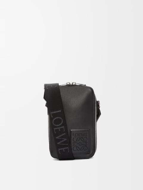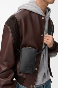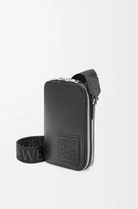 Functional pocket with a double zip closure. This version is crafted in satin calfskin. - Crossbody carry - Adjustable LOEWE webbing strap - Internal slip pocket with leather card slot - Herringbone cotton canvas lining - Debossed LOEWE Anagram patch Colour: Black Metallic colour: Palladium Main material: Satin Calf Strap length: 69 - 112 cm Strap drop: 29 - 52 cm Weight: 0.53 kg Height: 18 cm Width: 11 cm Depth: 3.7 cm Made in: Spain