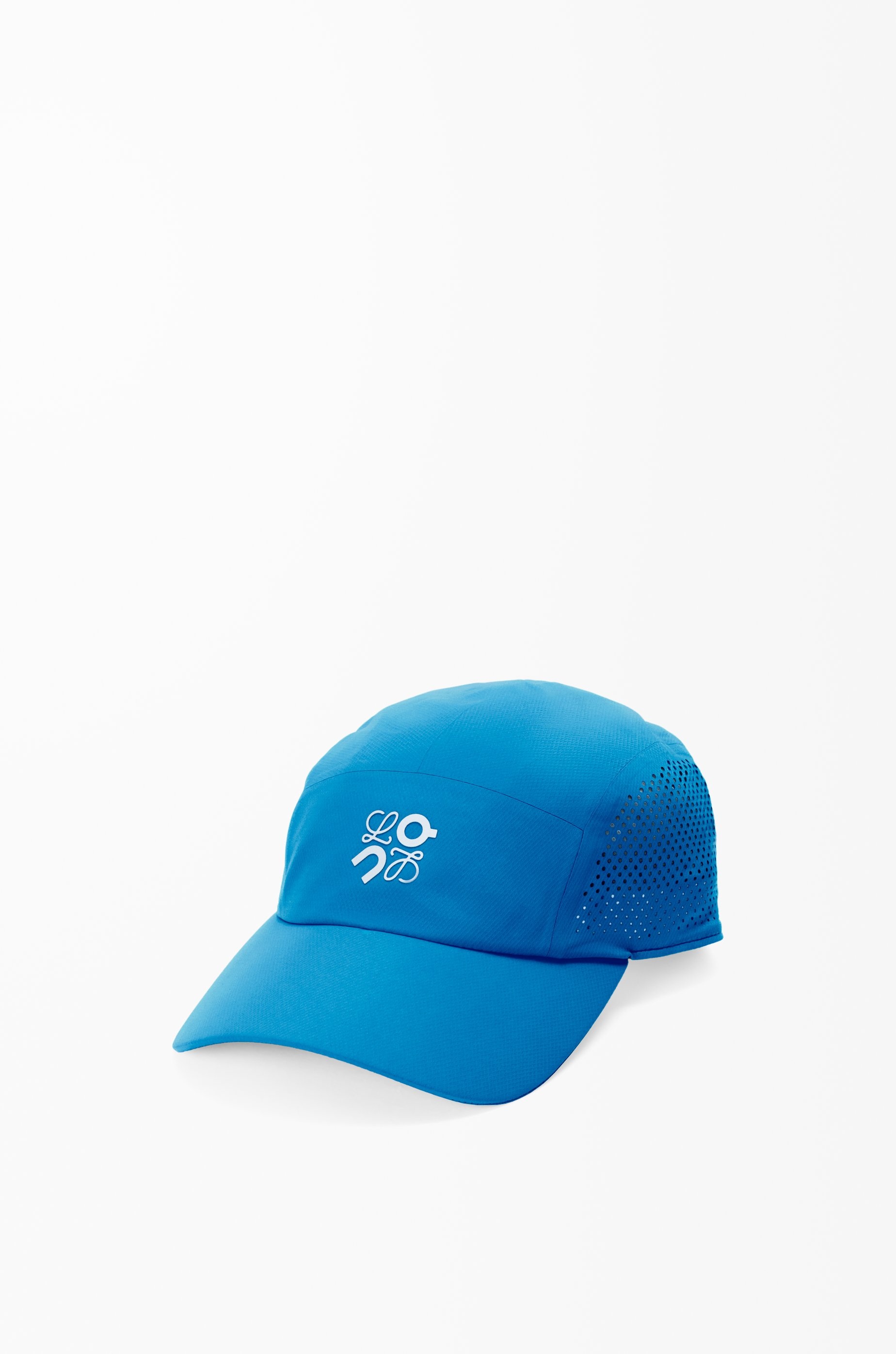 Cap in lightweight breathable technical shell featuring laser perforation at the sides for increased breathability and sealed seams. - Regular fit - Adjustable strap - Reflective Anagram placed at the front - Reflective LOEWE x ON logo placed at the back Colour: Blue Main material: Polyester Weight: 0.1 kg Made in: Mainland China Materials & care Main Material: 100% polyester