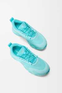 Lightweight sneaker in recycled polyester with an exclusive co-designed light foam sole built with a single Cloud at the heel. A brand new design, the Cloudsolo features a layered engineered mesh upper crafted from semi-translucent yarns with a TPU overlay. - Speed laces with Pebble toggle - Back loop for easy step in - LOEWE and On collaborative logo on external side - Runs small to size - we suggest to order a size up. For more information, please review the size guide. Colour: Turquoise Main material: Polyester Weight: 0.3 kg
